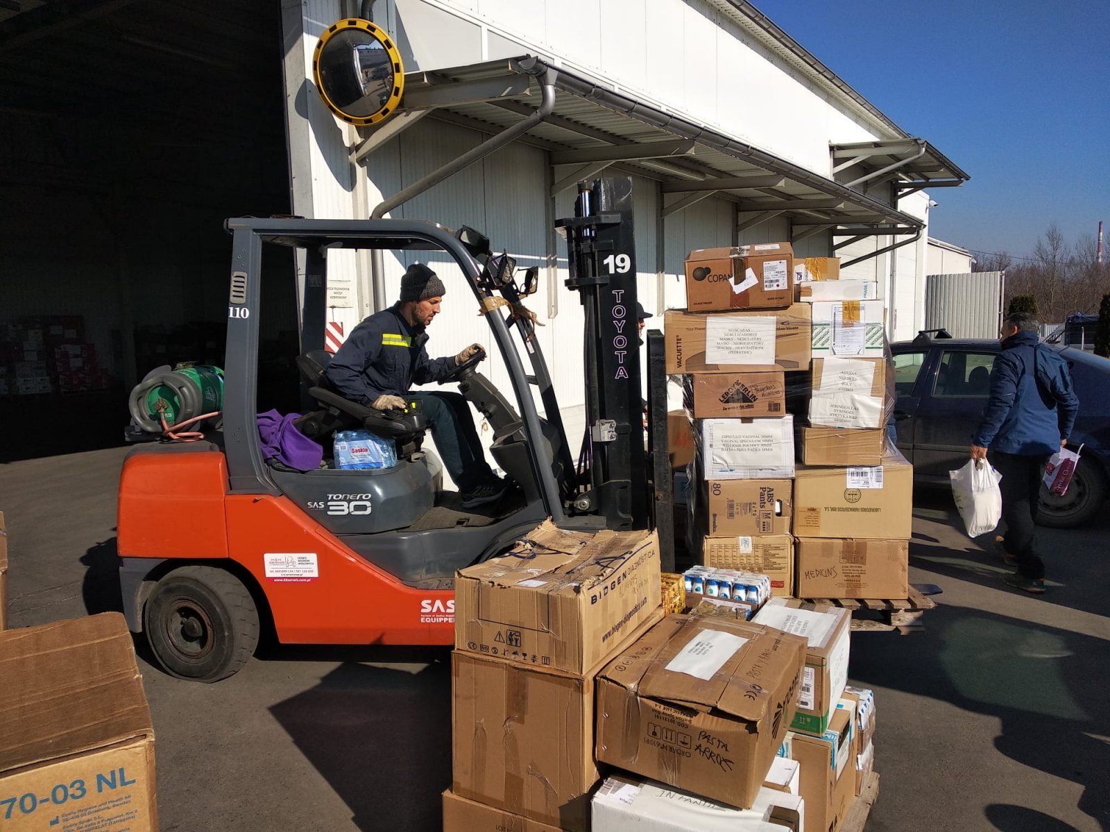 Se contacta con la escuela de enfermería de Vitoria y realizan un llamamiento para la recogida de material de primera necesidad, ropa, alimentos y material sanitario el cual posteriormente será transportado por nuestros vehículos a Polonia.
