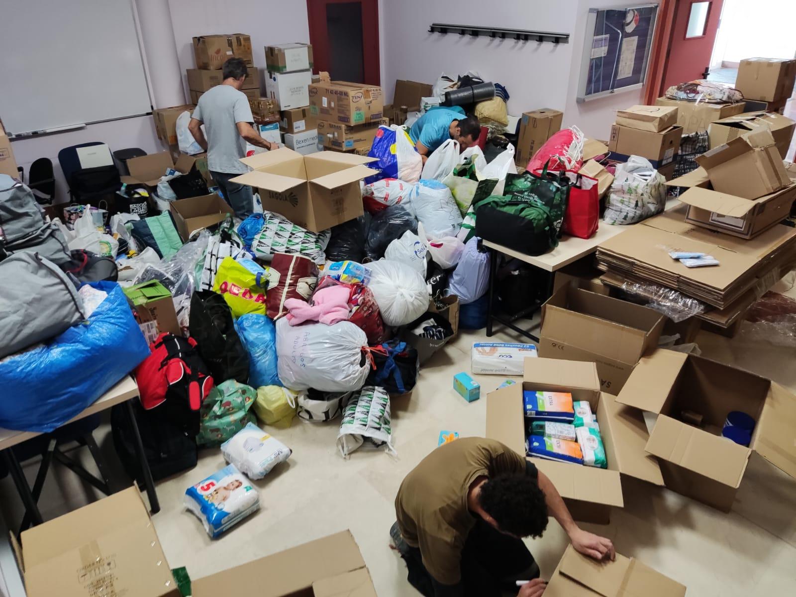 Se clasifica el material recogido y se embala. Ante la gran cantidad de material recogido y ser imposible por nuestra parte el transporte de todo en nuestras furgonetas, se hace una clasificación del material más necesario que es el que se transportará en nuestras vehículos y el resto del material se transporta al punto de recogida de la asociación socio cultural y de cooperación al desarrollo Ucrania-Euskadi el cual será enviado a Polonia por parte de la ONG Olvidados en los próximos días